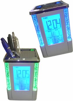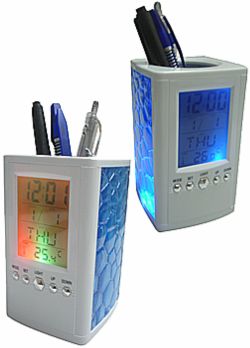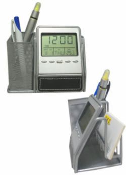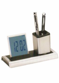Relógio LCD com Porta Caneta